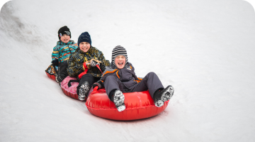 Любой желающий может прокатиться на горке, которая расположена в парковой зоне аутлета. Приходите со своими ледянками и ватрушками.